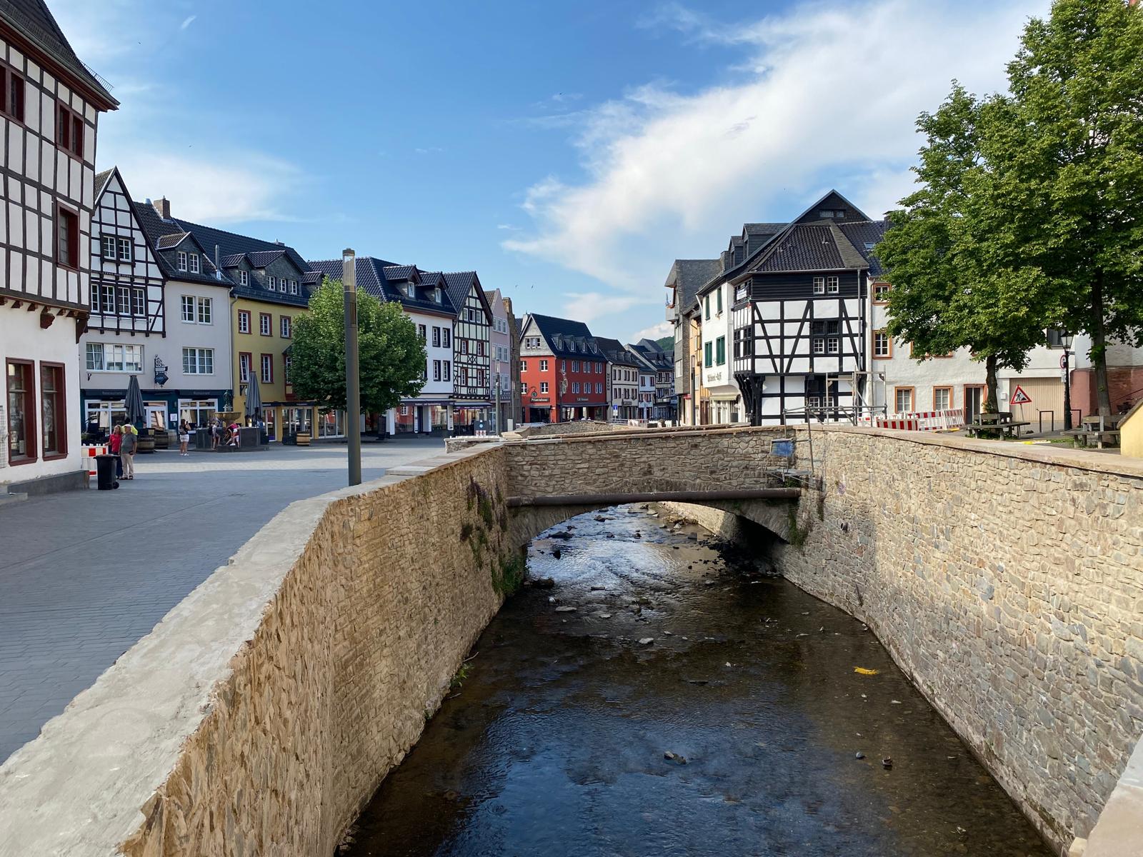 Reconstructed bridge and walls within the city of Bad Münstereifel, North Rhine-Westphalia, Germany