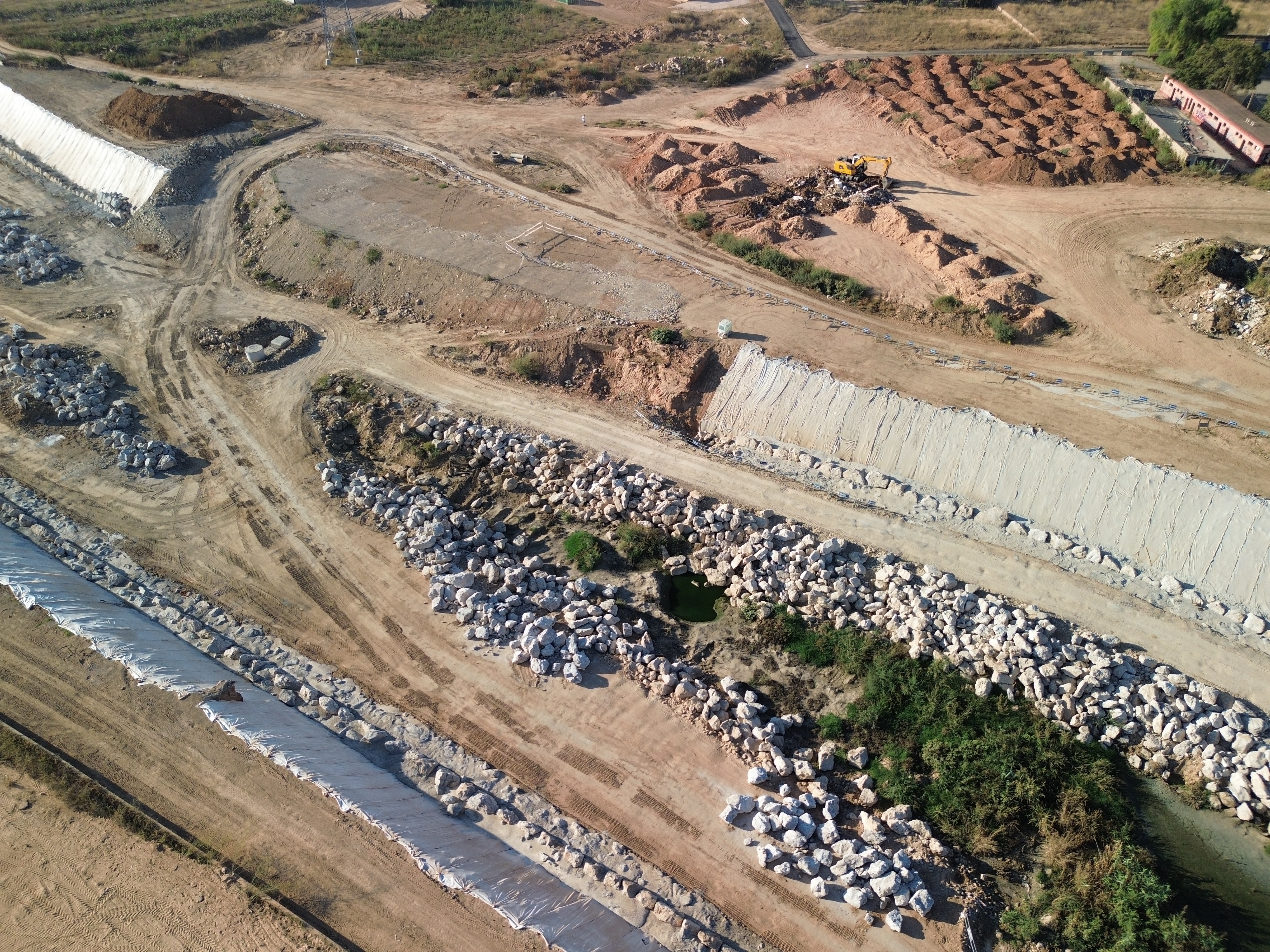 Drone view of the reconstruction of Rambla del Poyo in Valencia, one year after the floods.